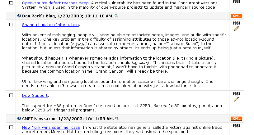 Don Park is a friendly guy and I imagine he won't mind if I use his weblog as an example.